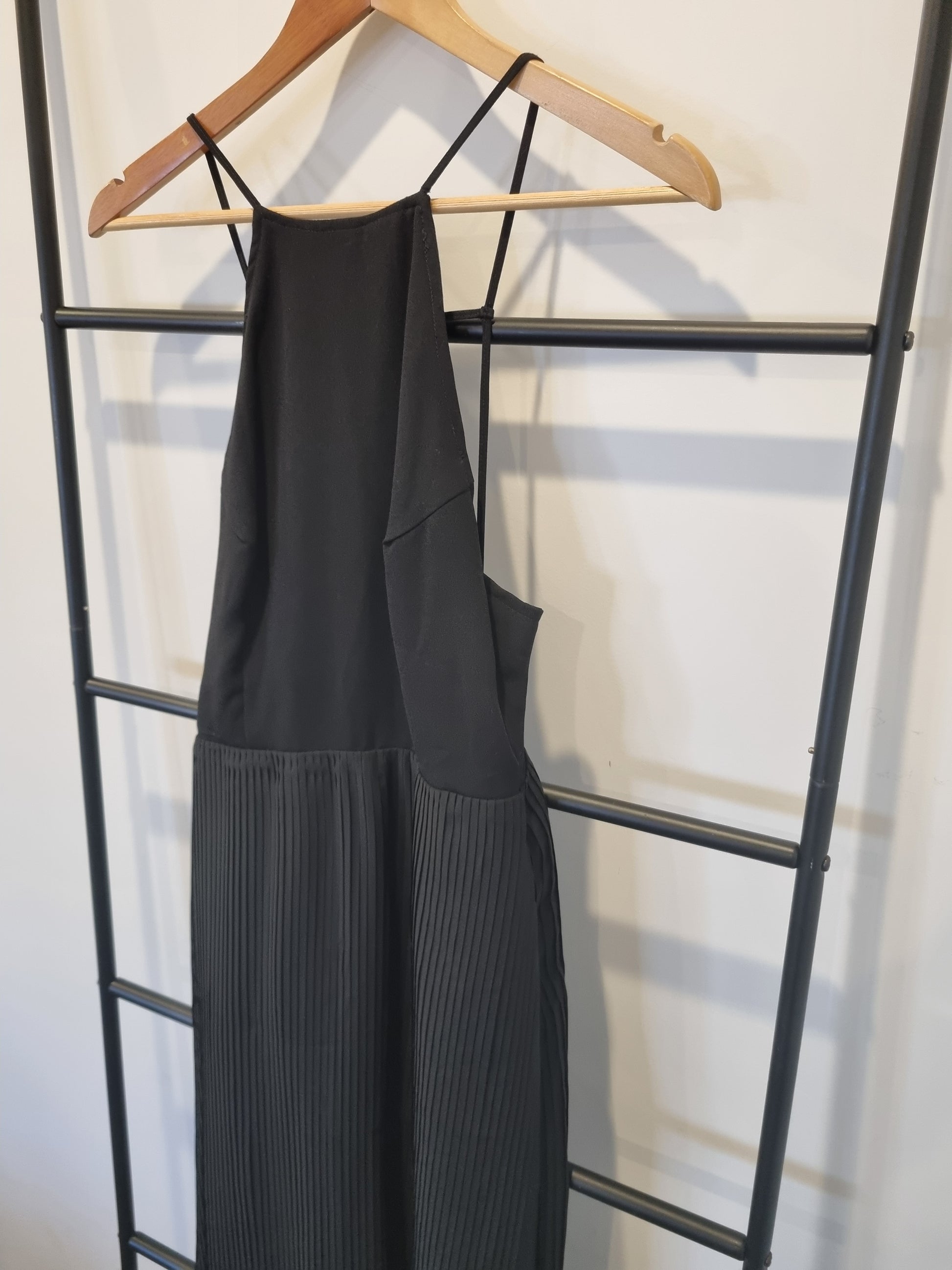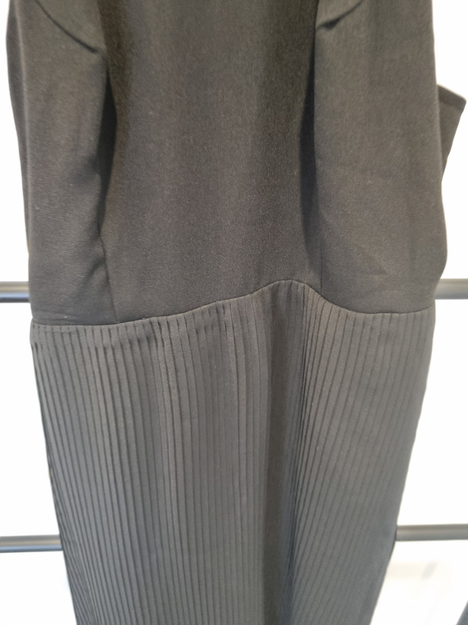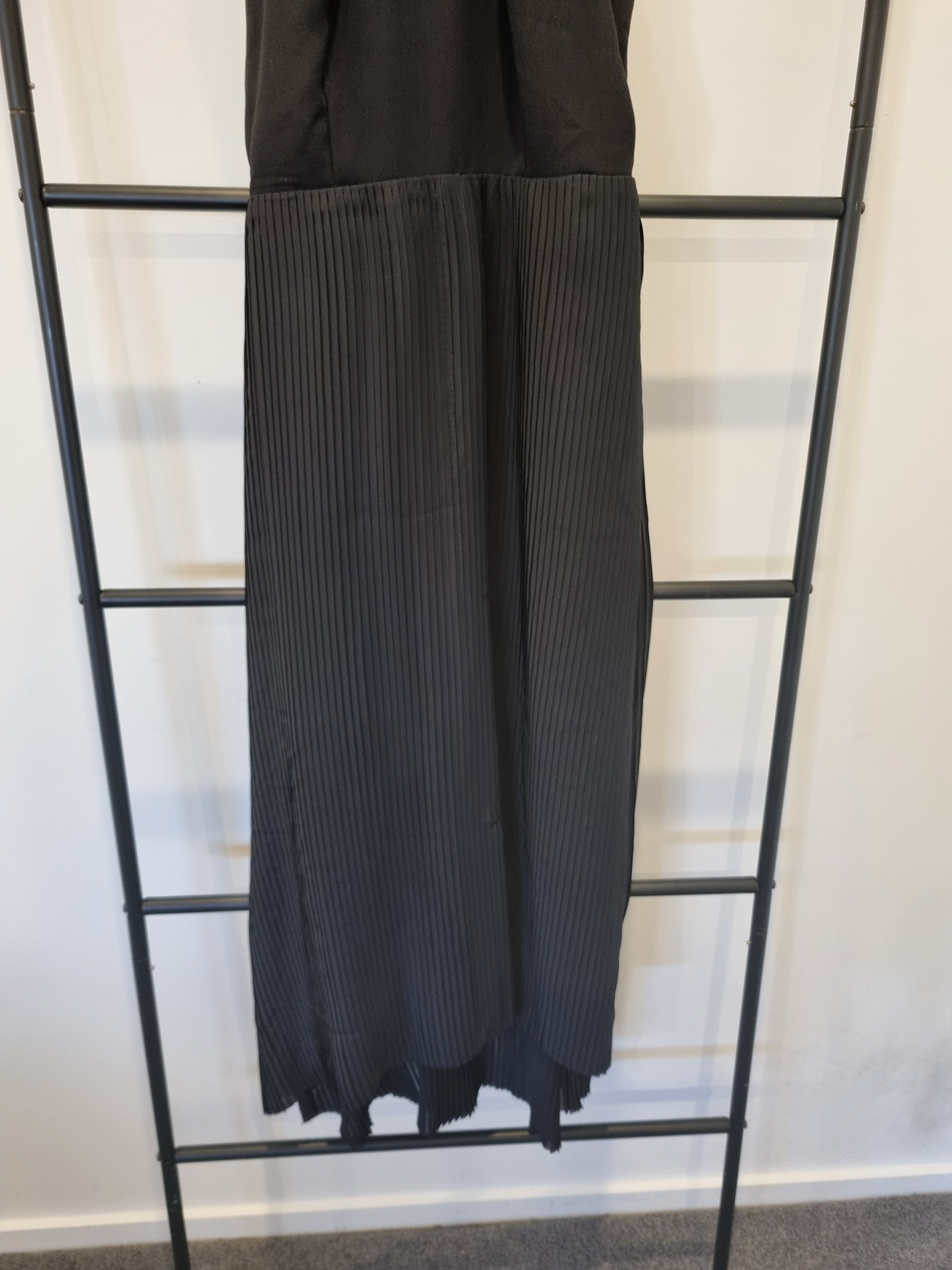 A truly stunning black dress full of texture shapes and fabrics.